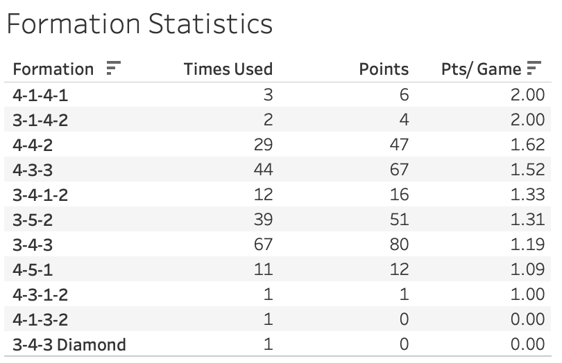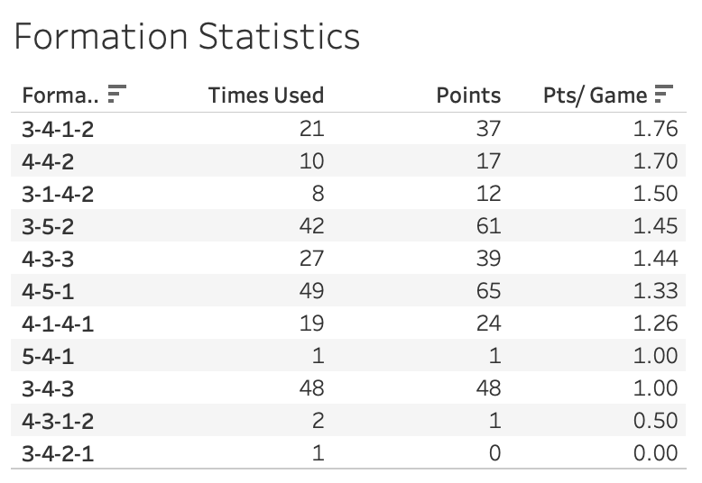 Now that we know which formations are the most popular in K League 1, let’s looks at how they have performed.