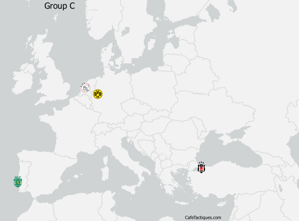 Beşiktaş, in Group C, are the club who have to travel the furthest in this season’s group stage. They travel away to Sporting in Portugal, Ajax in the Netherlands, and Dortmund in Germany.