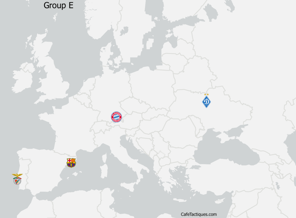 Group E’s Dynamo Kyiv have the third-longest travel distance. With two trips to the Iberian peninsula to face Benfica and Barcelona, along with a trip to Germany against Bayern Munich, Dynamo Kyiv will travel around 14,275 km.