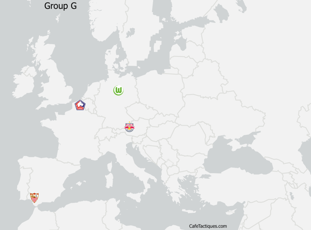 Sevilla are the odd ones out in Group G, being located much further away from all three other clubs. Their travel is about twice as much as the other clubs in their group, but have an argument for being the strongest team in the group. While not traveling nearly as far as many other clubs, being the most-traveled side in their group might play a role relative to the other teams.