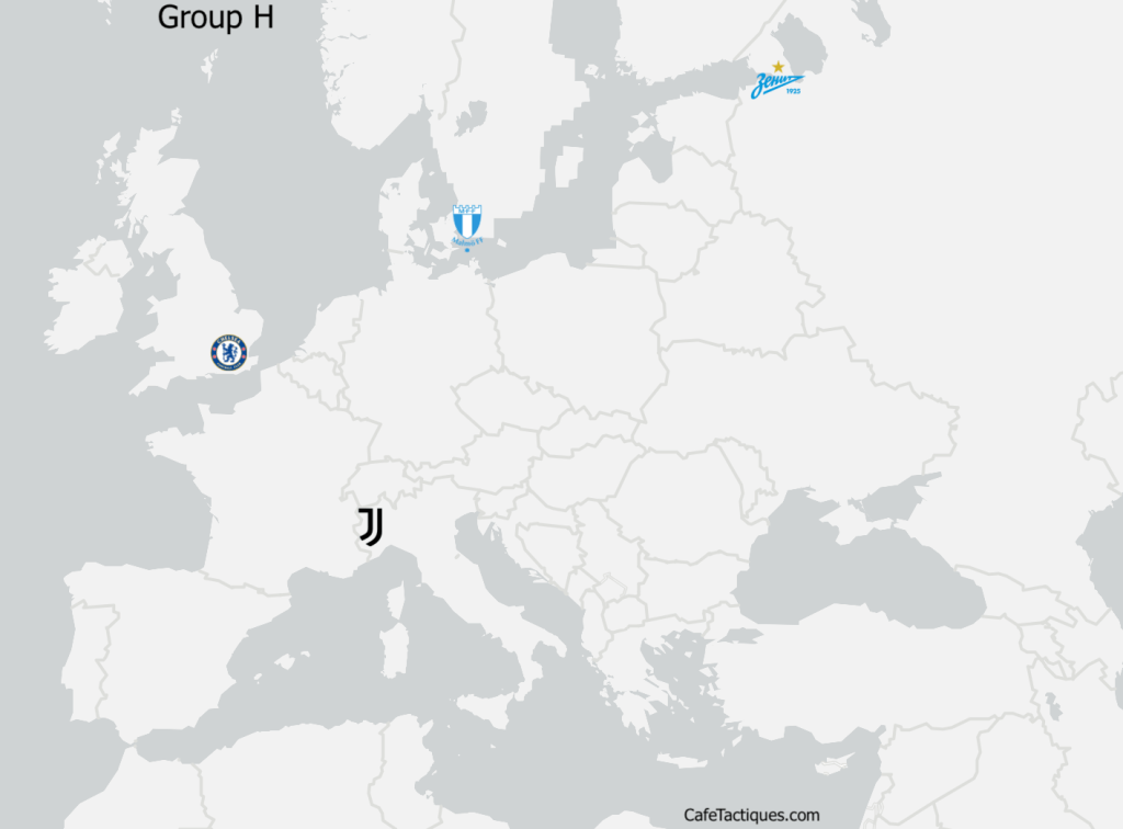 Group H involves the two most northern clubs in this season’s group stage—Zenit and Malmö. All teams have to travel a fair distance, but Zenit have to travel a bit more than the others. Without huge differences in travel distances between the teams, this group might not see as much of an effect as some others.
