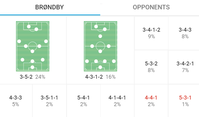 Brøndby used several different formations last season, albeit typically slight tweaks on their main formation of 3-5-2. Frederiksen typically employed a back 3/5, but rotated into a back 4 near the end of the season.