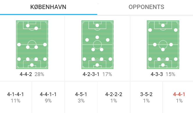 Here is a breakdown of FC Copenhagen’s formations played as a percent of total minutes played. The screenshot is from Wyscout (with permission to post).