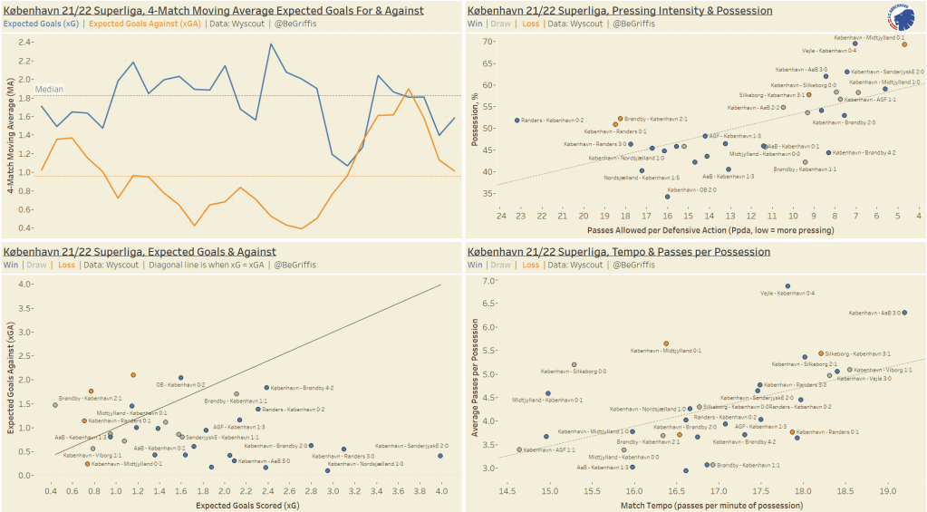 FC Copenhagen being able to win games last season where they played different pressing styles, passing styles, and had a negative xGD is the mark of a good team.