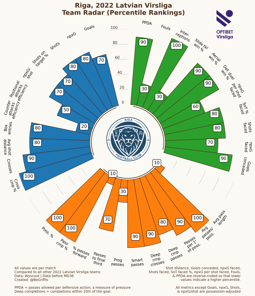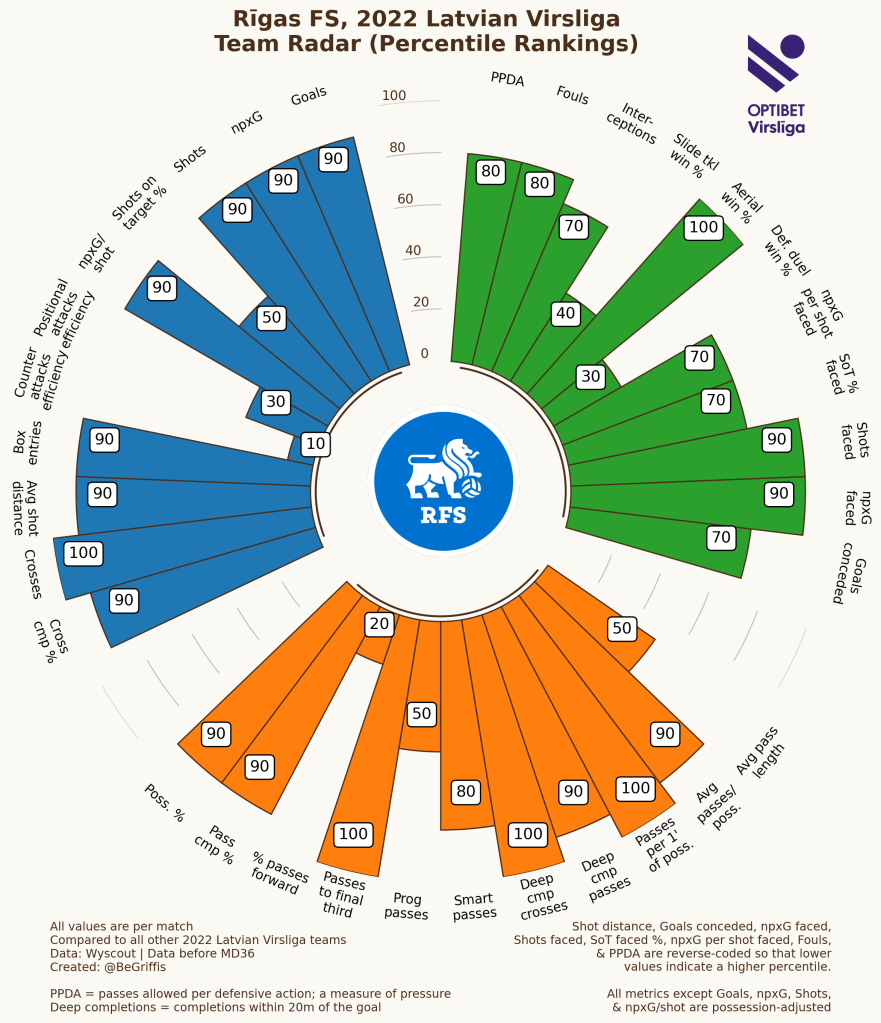 Finally, let’s take a look at the style radars for Riga FC and RFS.