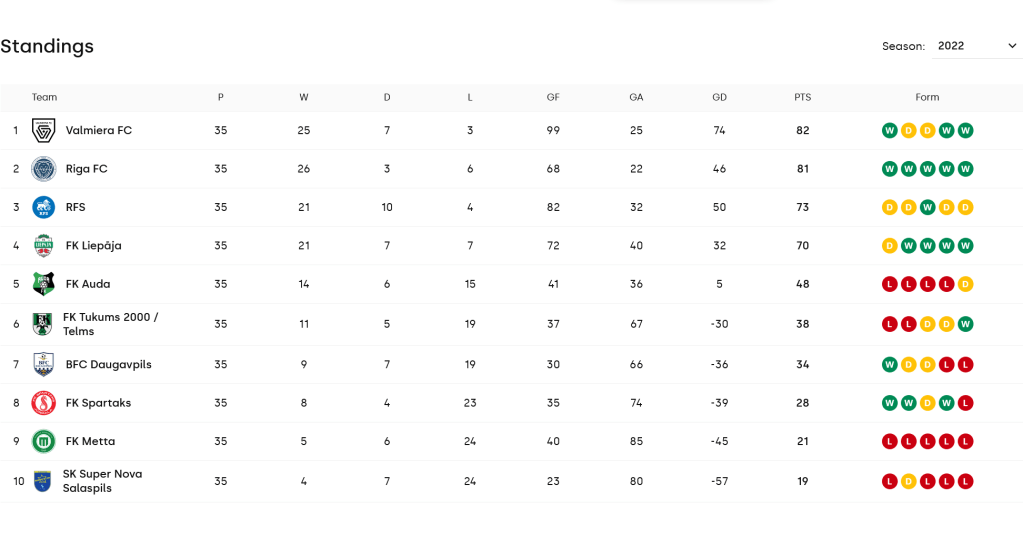 The 2022 edition of Latvia’s top flight, the Virsliga, will be decided on the final match day. Valmiera sit in the driver’s seat with 82 points, just one more than 3-time-champions Riga FC. Valmiera look to claim their first-ever Virsliga title, but while they simply need to match or better Riga’s result, it won’t be easy.