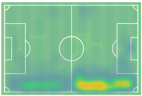 However, we see he’s well below the median for successful defensive actions. As a wing back he will be a little further up the pitch than pure fullbacks, but this still shows how one-sided he is. Great going forward, not so great in defense. But of course, actions by themselves don’t give us a full picture, so let’s look at something else.