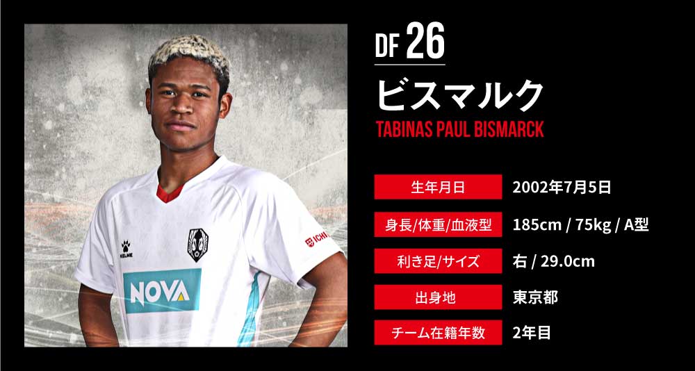 Paul Bismarck Tabinas, known as Bismarck (ビスマルク), is a 20 year old Japanese wing back playing for Iwate Grulla Morioka, who were just relegated back to J3 after a one-off season in the second flight where they finished dead-last 22nd.
