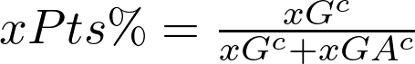 Changing the variables we use, here is the base calculation for xPts%, or the percentage of available points a team should have won based on their goals scored and conceded.